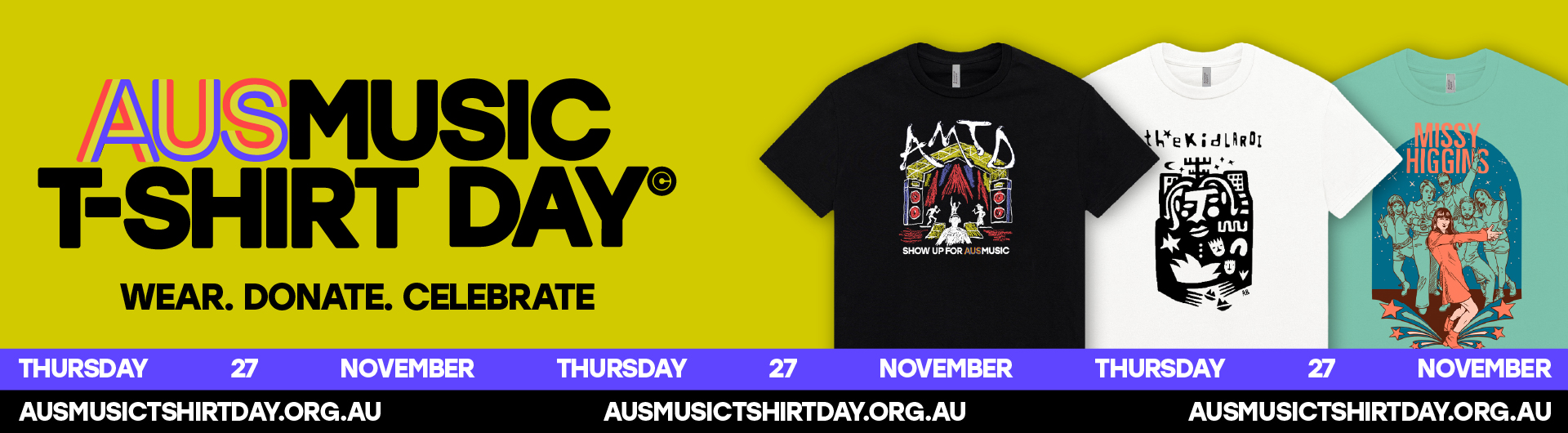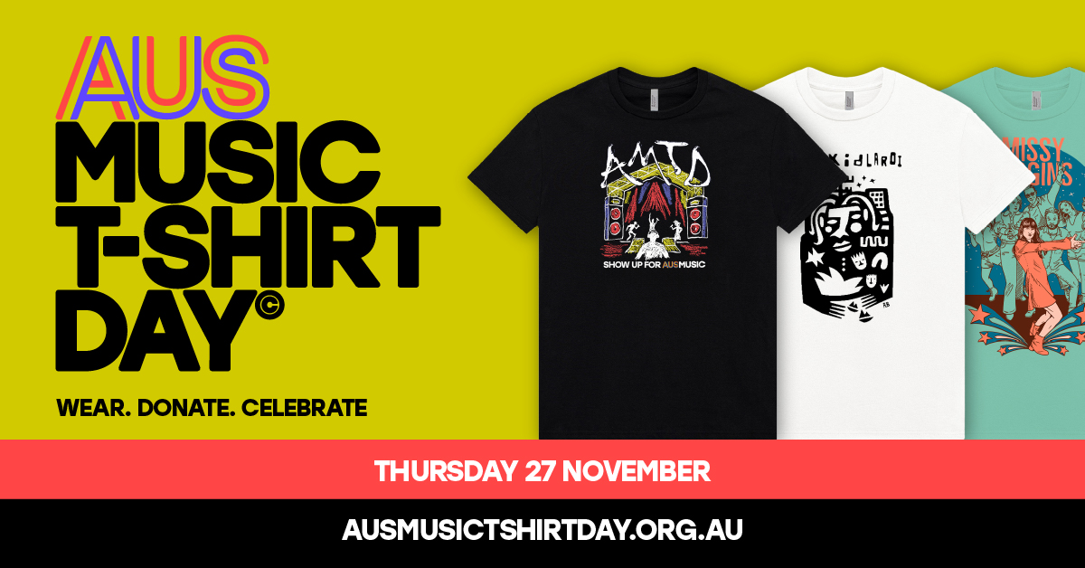 AusMusic T-Shirt Day is back on Thursday 27 November 2025 — a national day to celebrate Australian music and show care for the people who make it possible.