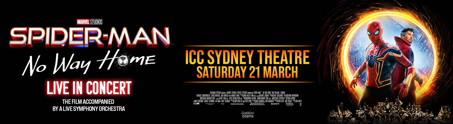 Symphonic Cinema Presents the Australian premiere of Spider-Man™: No Way Home live in concert. The box office smash hit will have its incredible score, by Academy Award winning composer, Michael Giacchino, performed by a symphony orchestra live to picture bringing all the wall-crawling action to life as never before.